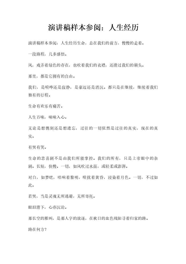 演讲稿样本参阅:人生经历