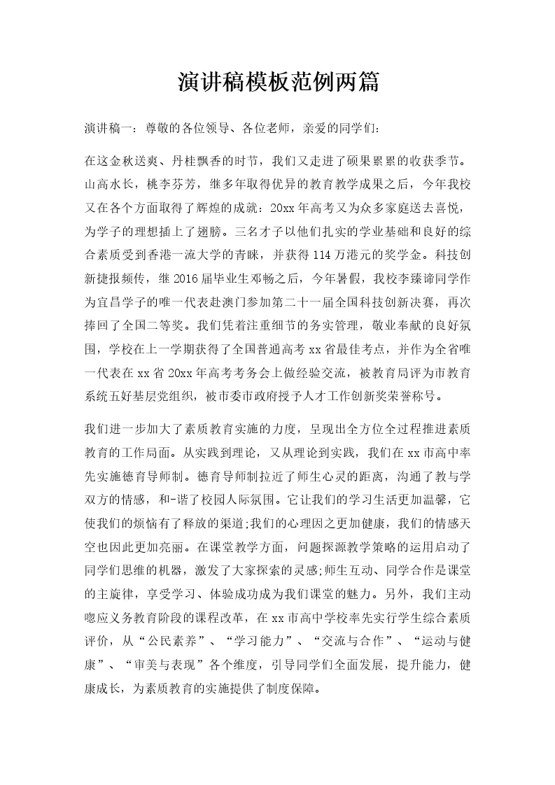 演讲稿模板范例两篇
