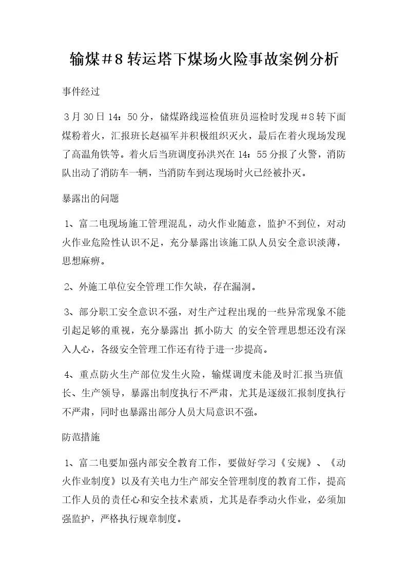 输煤#8转运塔下煤场火险事故案例分析