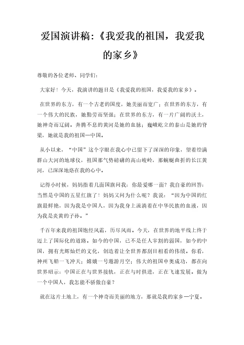 爱国演讲稿《我爱我的祖国,我爱我的家乡》