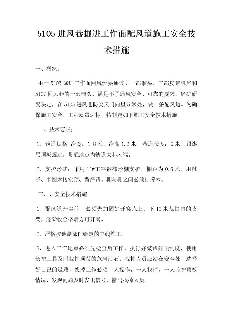 进风巷掘进工作面配风道施工安全技术措施