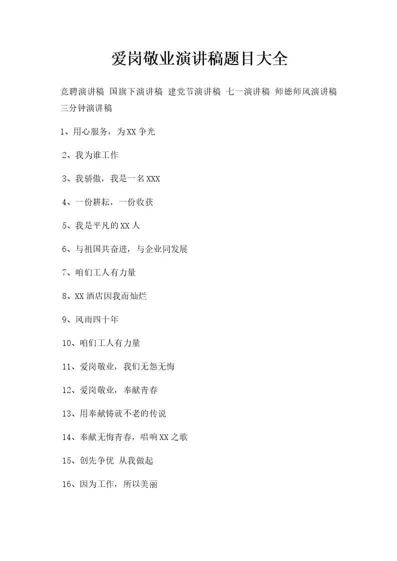 爱岗敬业演讲稿题目...