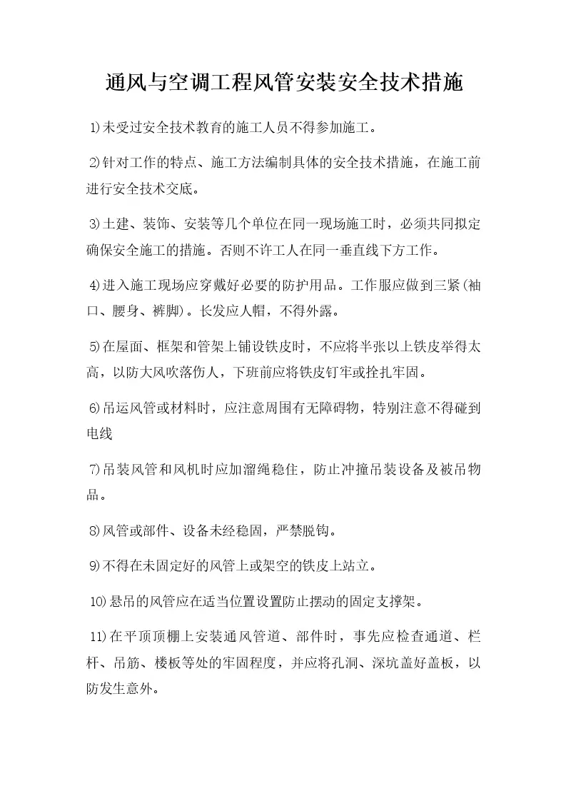 通风与空调工程风管安装安全技术措施