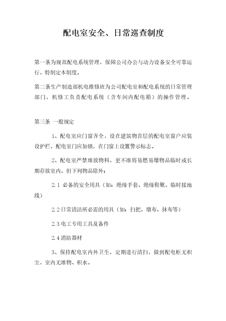 配电室安全、日常巡查制度