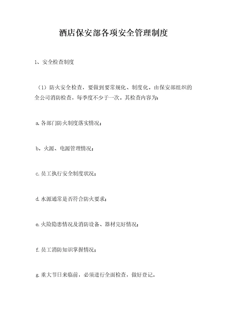 酒店保安部各项安全管理制度