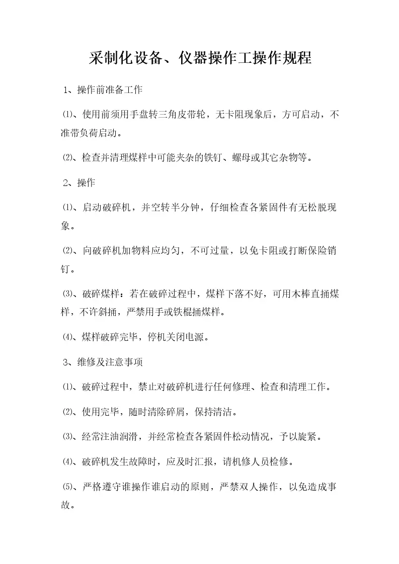 采制化设备、仪器操作工操作规程