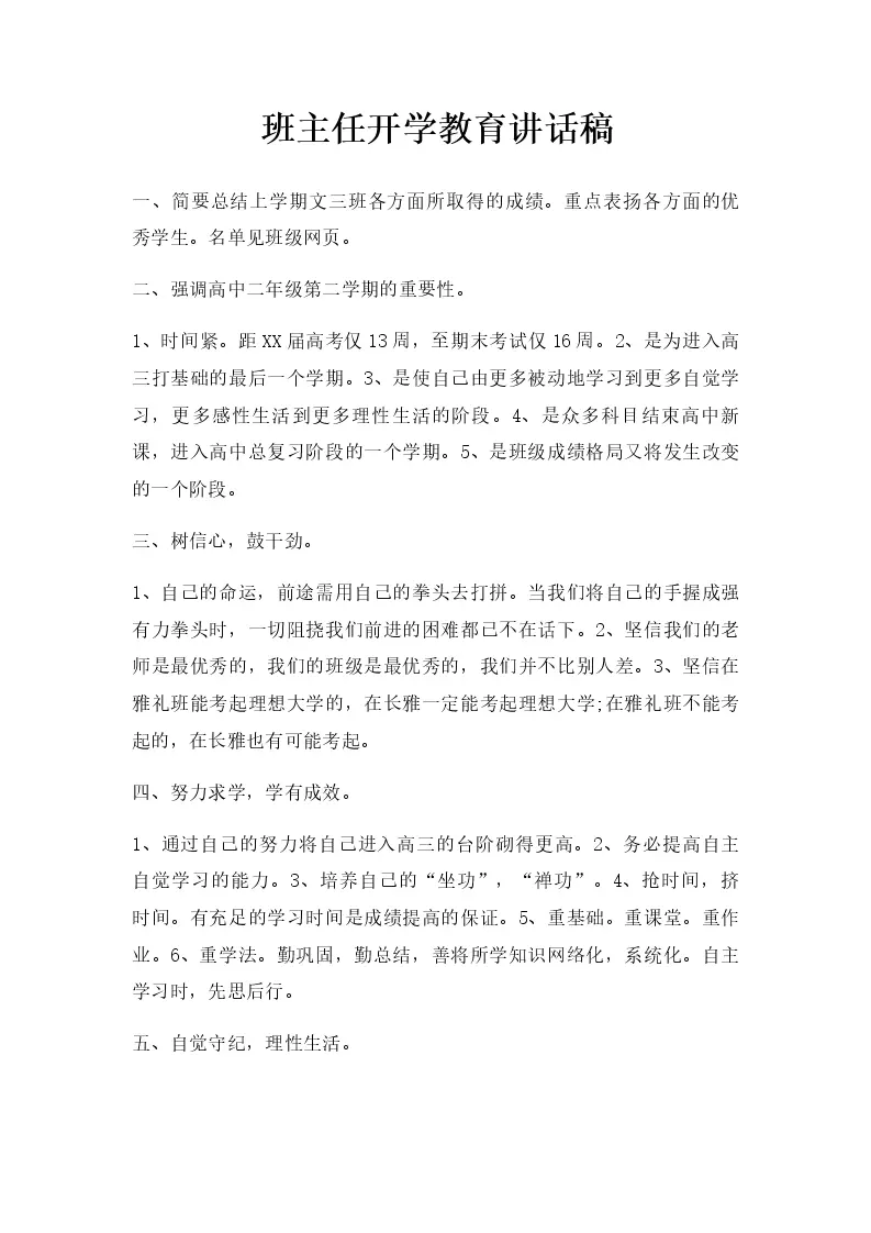班主任开学教育讲话稿