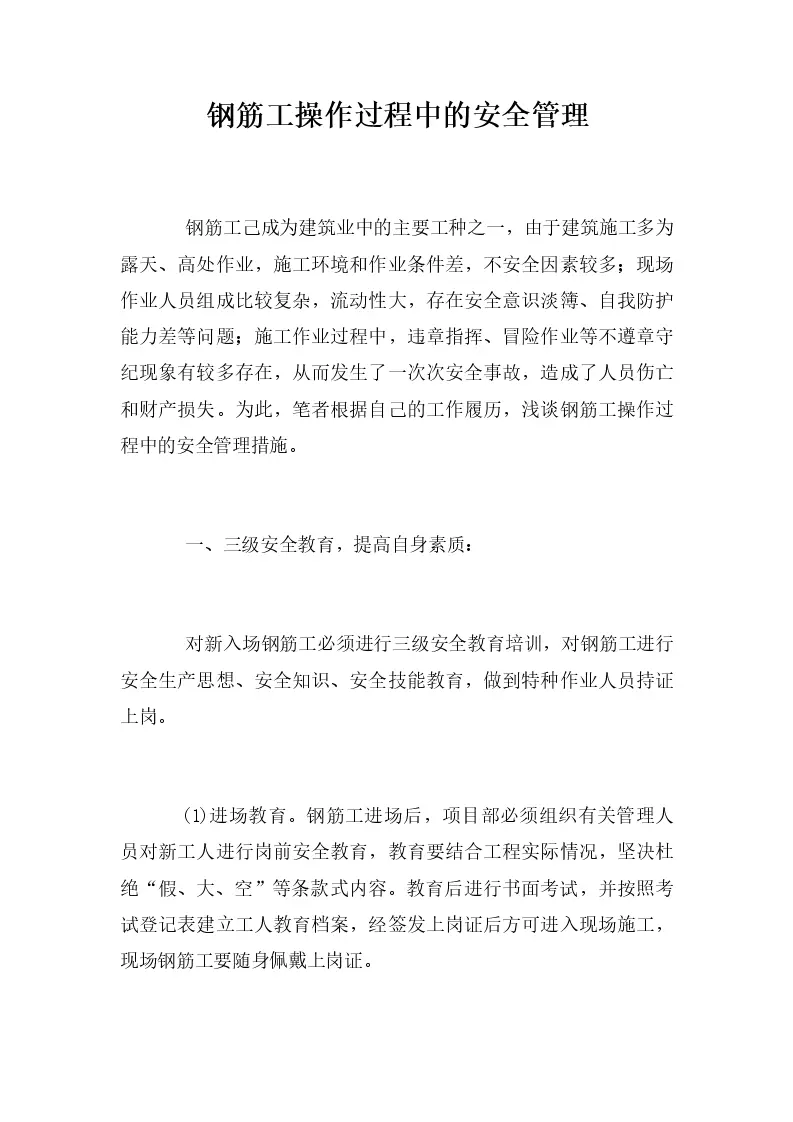 钢筋工操作过程中的安全管理