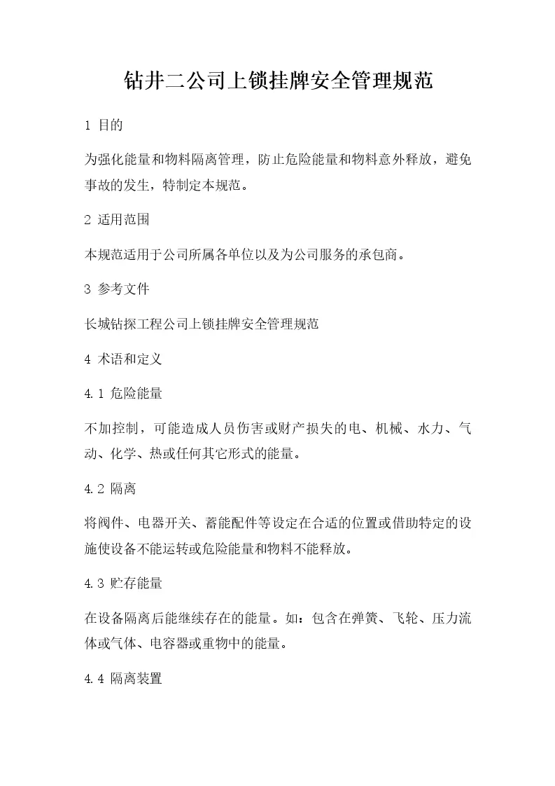 钻井二公司上锁挂牌安全管理规范