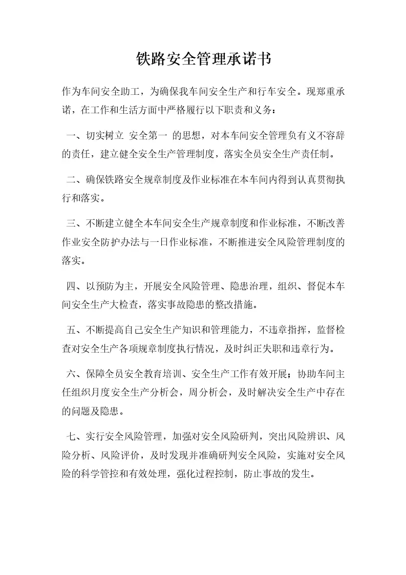 铁路安全管理承诺书