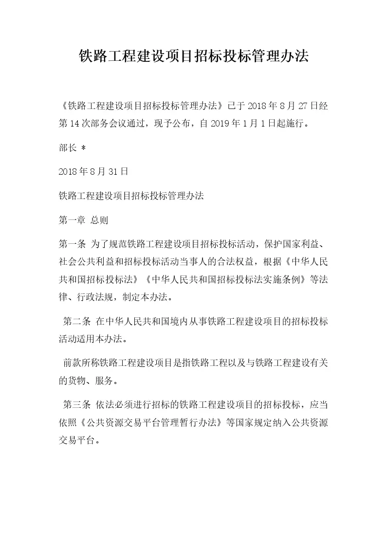 铁路工程建设项目招标投标管理办法