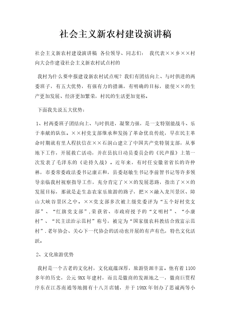 社会主义新农村建设演讲稿