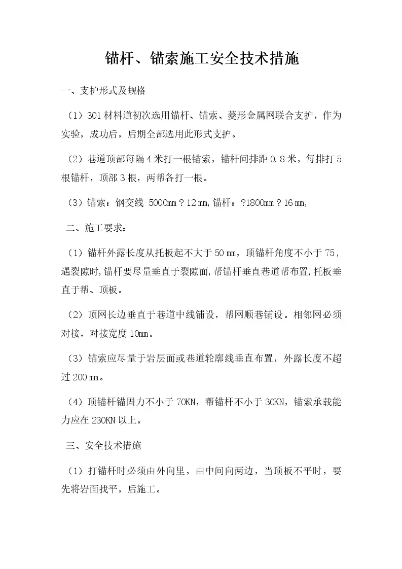 锚杆、锚索施工安全技术措施