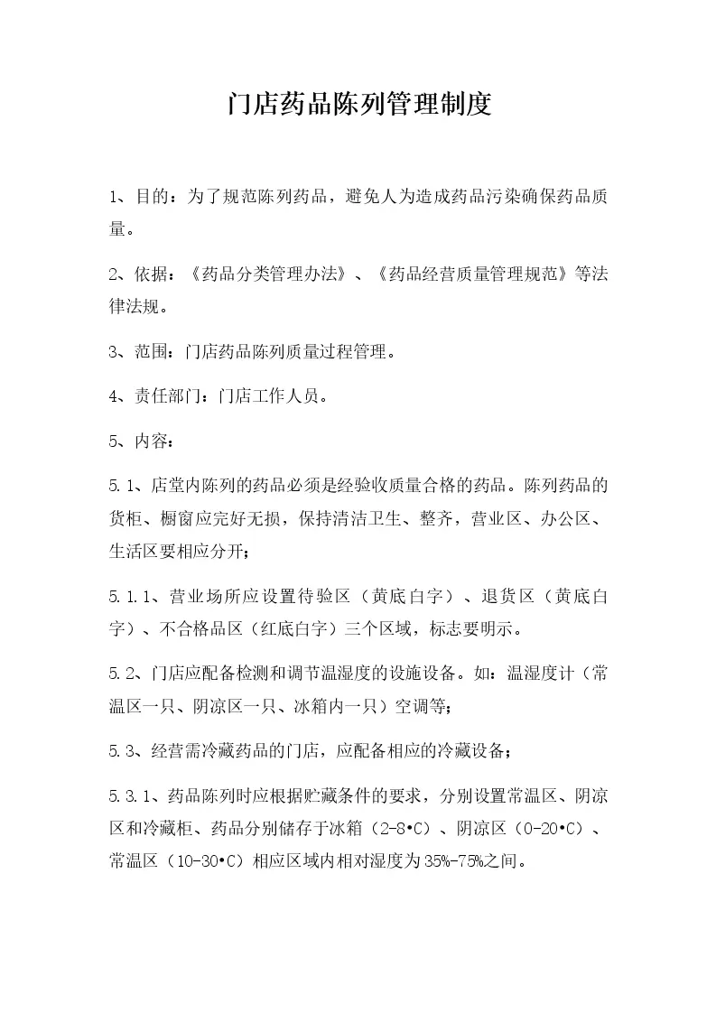 门店药品陈列管理制度