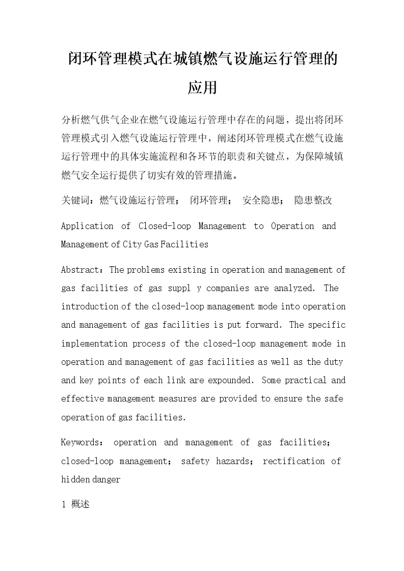 闭环管理模式在城镇燃气设施运行管理的应用