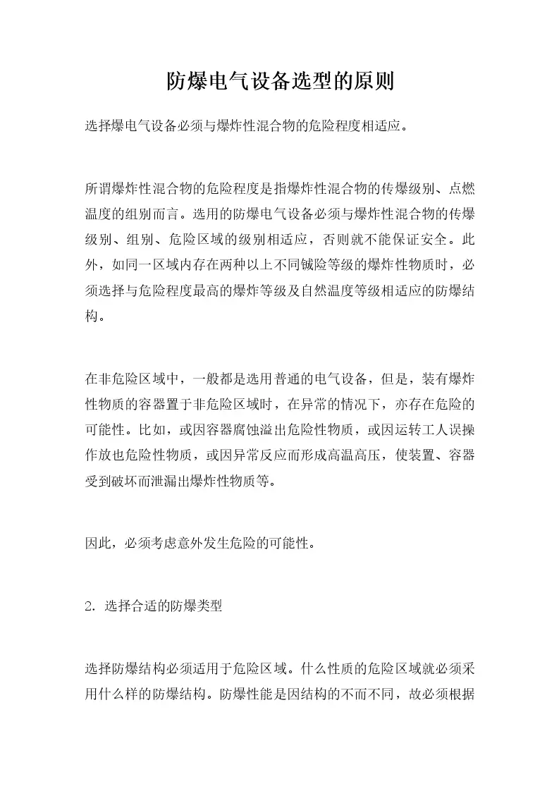 防爆电气设备选型的原则