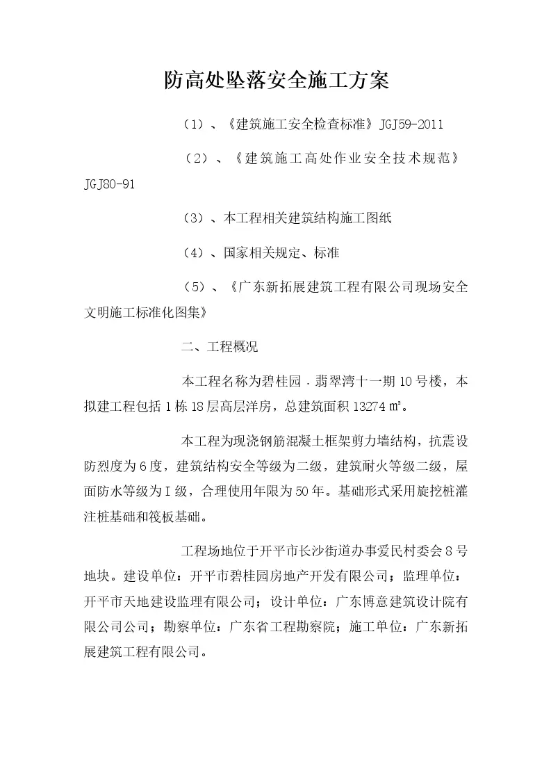 防高处坠落安全施工方案