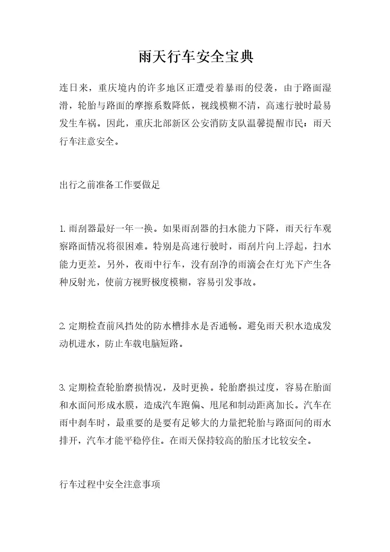雨天行车安全宝典