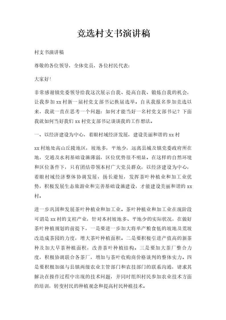 竞选村支书演讲稿