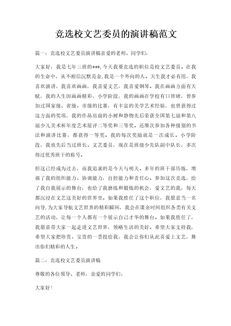 竞选校文艺委员的演讲稿范文