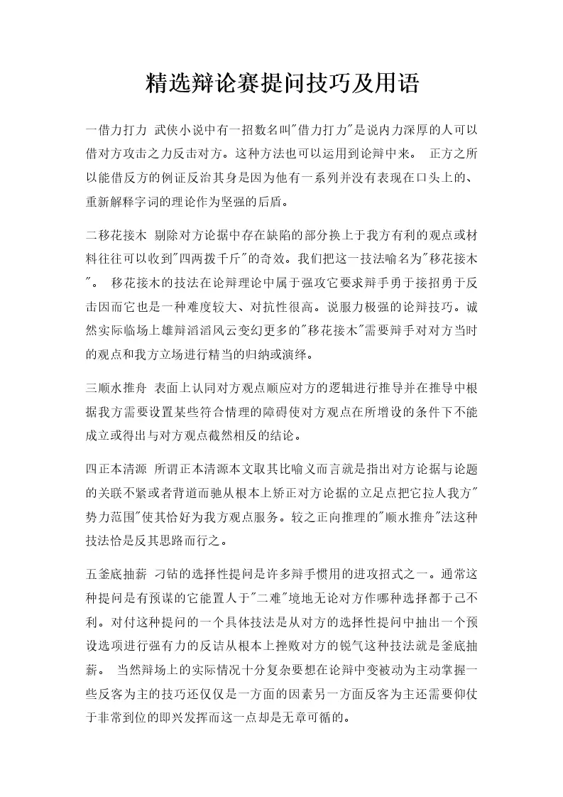 精选辩论赛提问技巧...