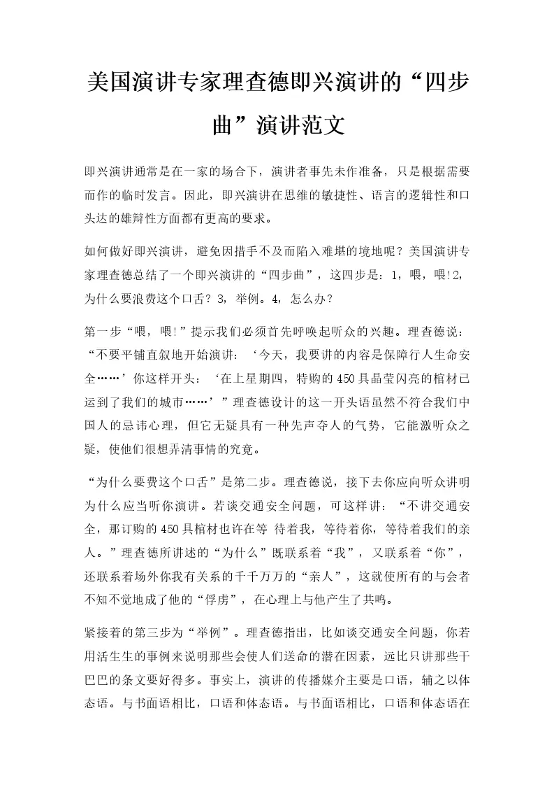 美国演讲专家理查德即兴演讲的“四步曲”演讲范文