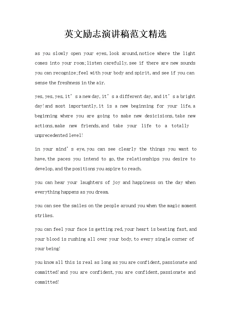 英文励志演讲稿范文...