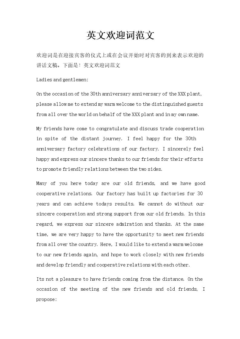 英文欢迎词范文