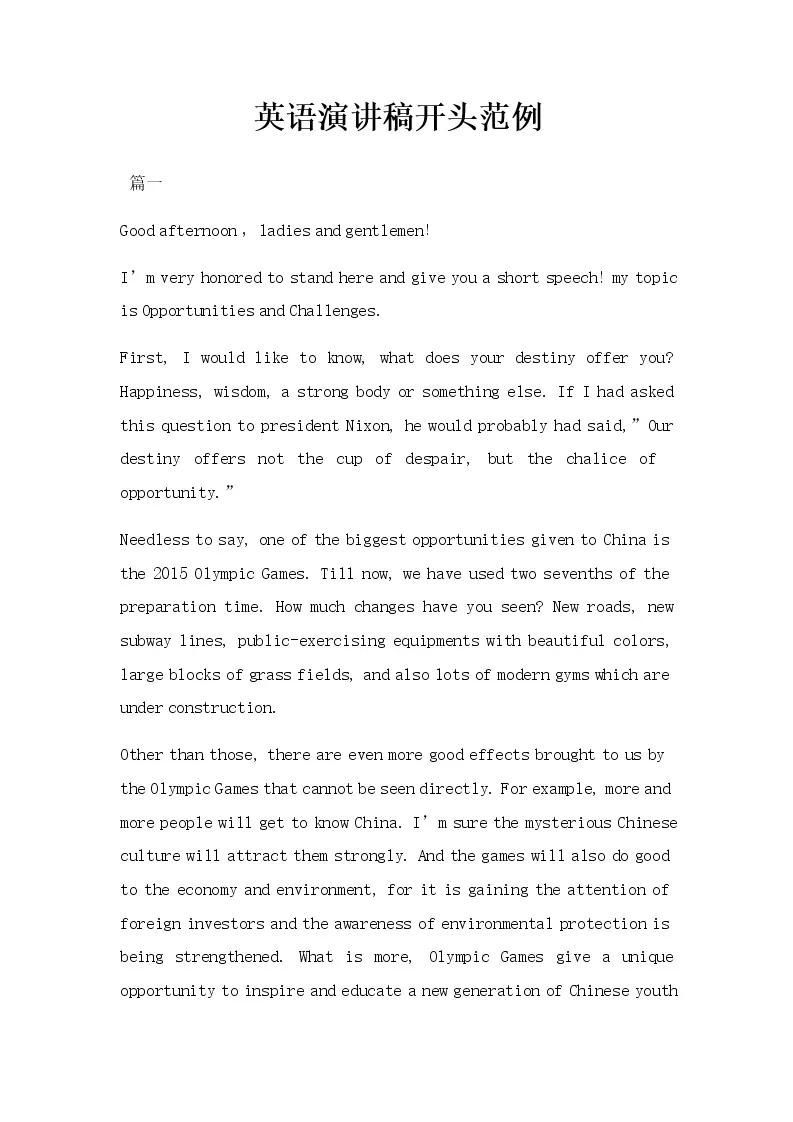 英语演讲稿开头范例
