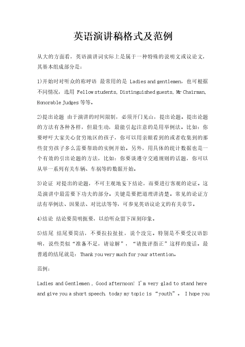 英语演讲稿格式及范例