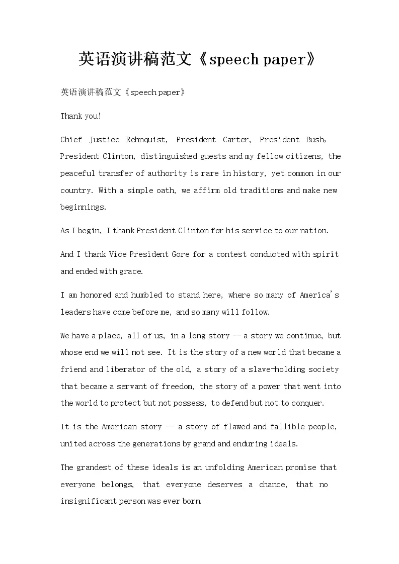 英语演讲稿范文《speech paper》