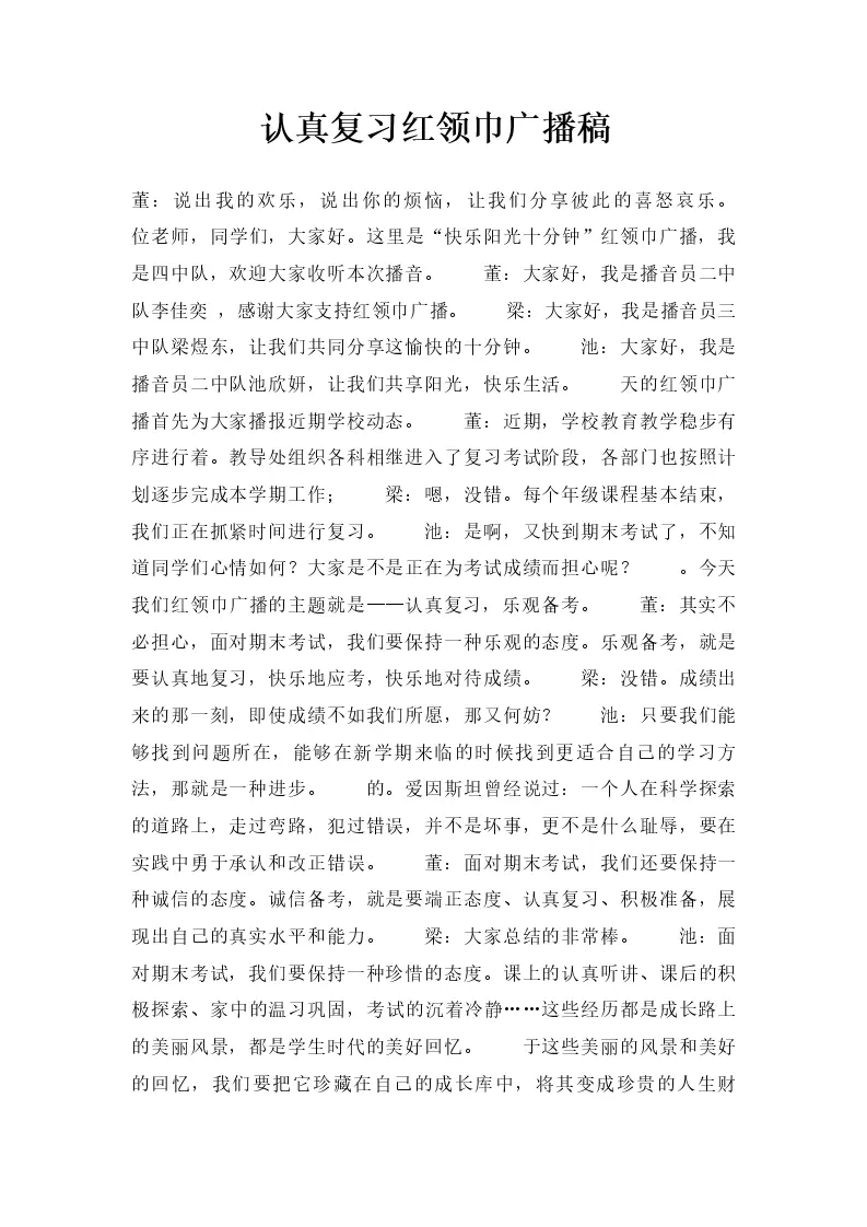 认真复习红领巾广播稿