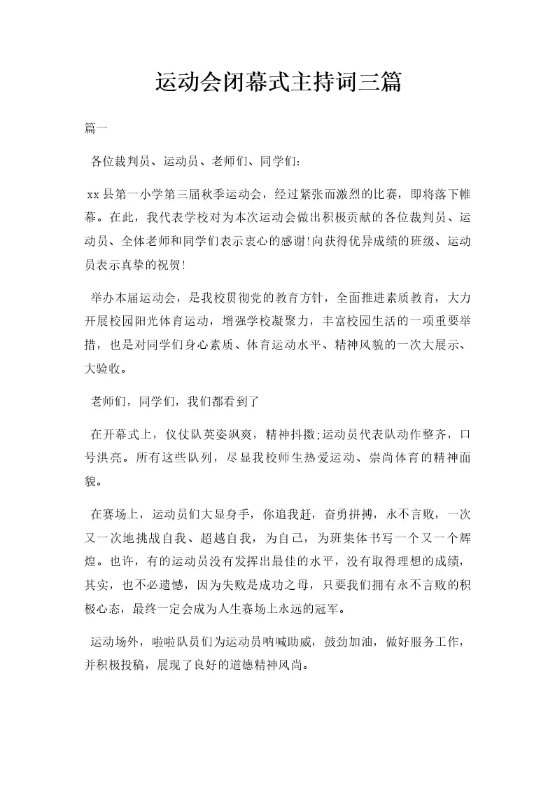 运动会闭幕式主持词三篇