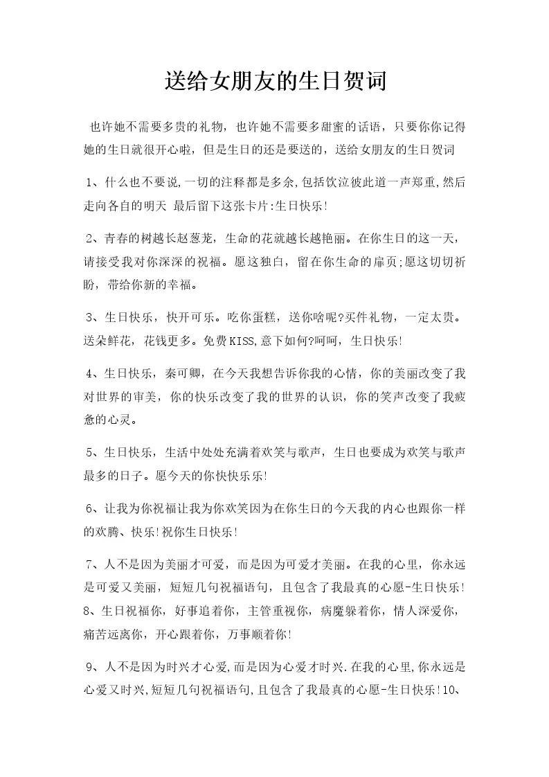 送给女朋友的生日贺词