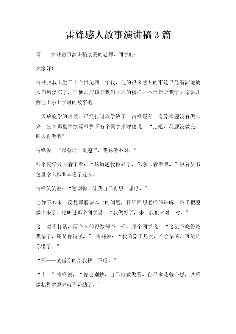 雷锋感人故事演讲稿...