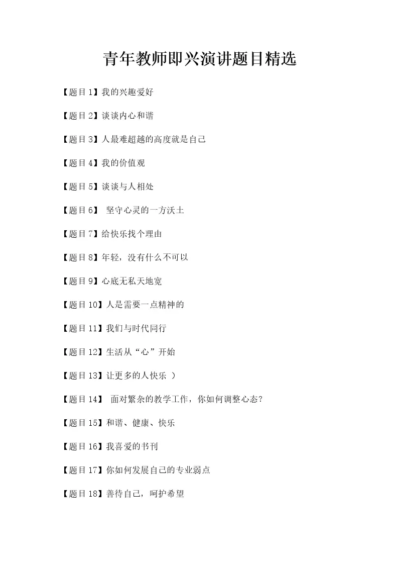青年教师即兴演讲题目精选