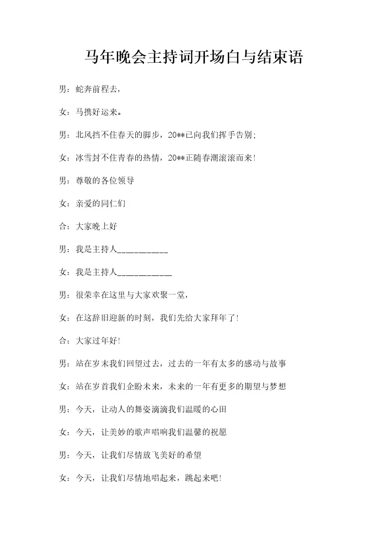 马年晚会主持词开场白与结束语