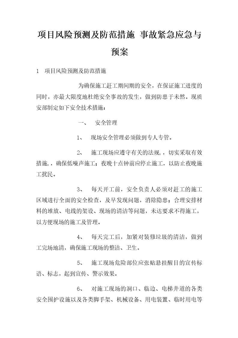 项目风险预测及防范措施 事故紧急应急与预案