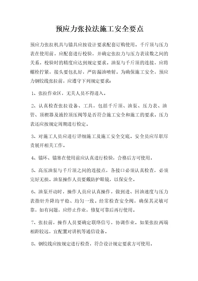 预应力张拉法施工安全要点