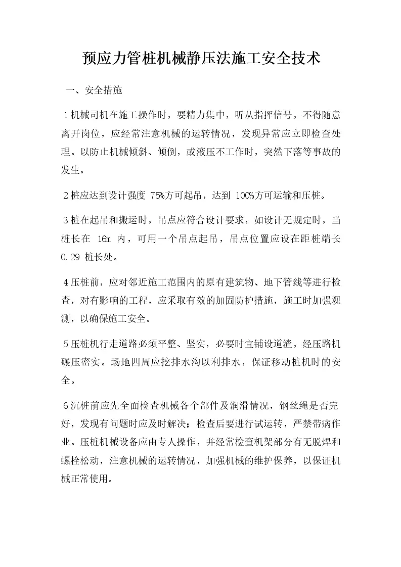 预应力管桩机械静压法施工安全技术