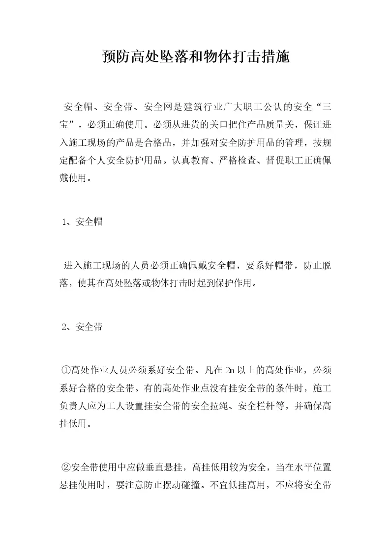 预防高处坠落和物体打击措施