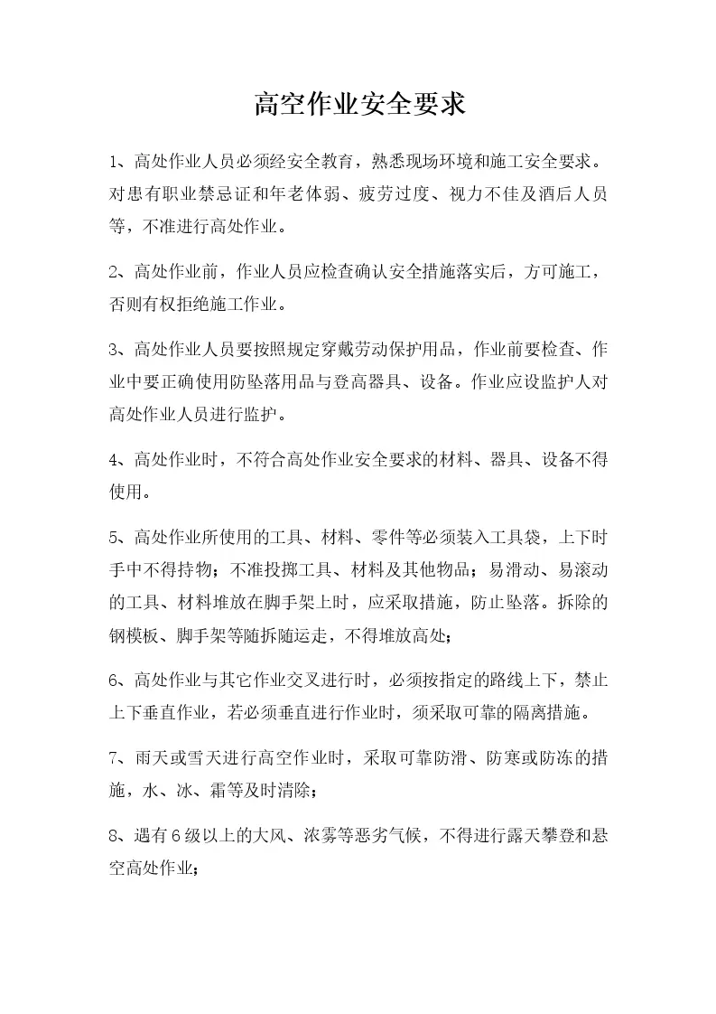 高空作业安全要求