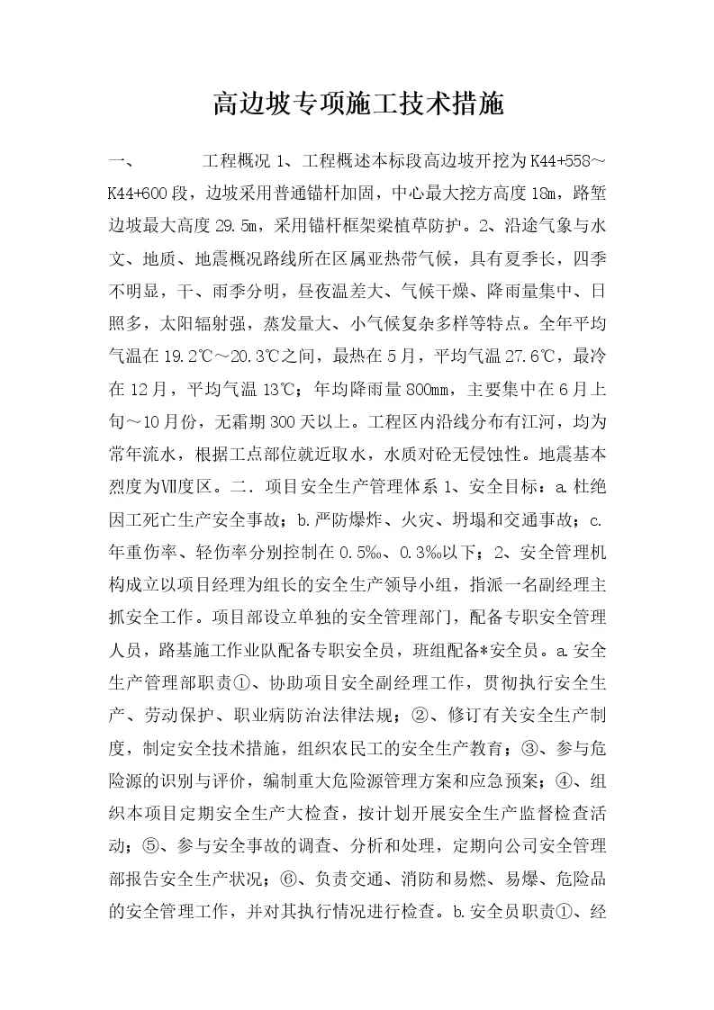 高边坡专项施工技术措施