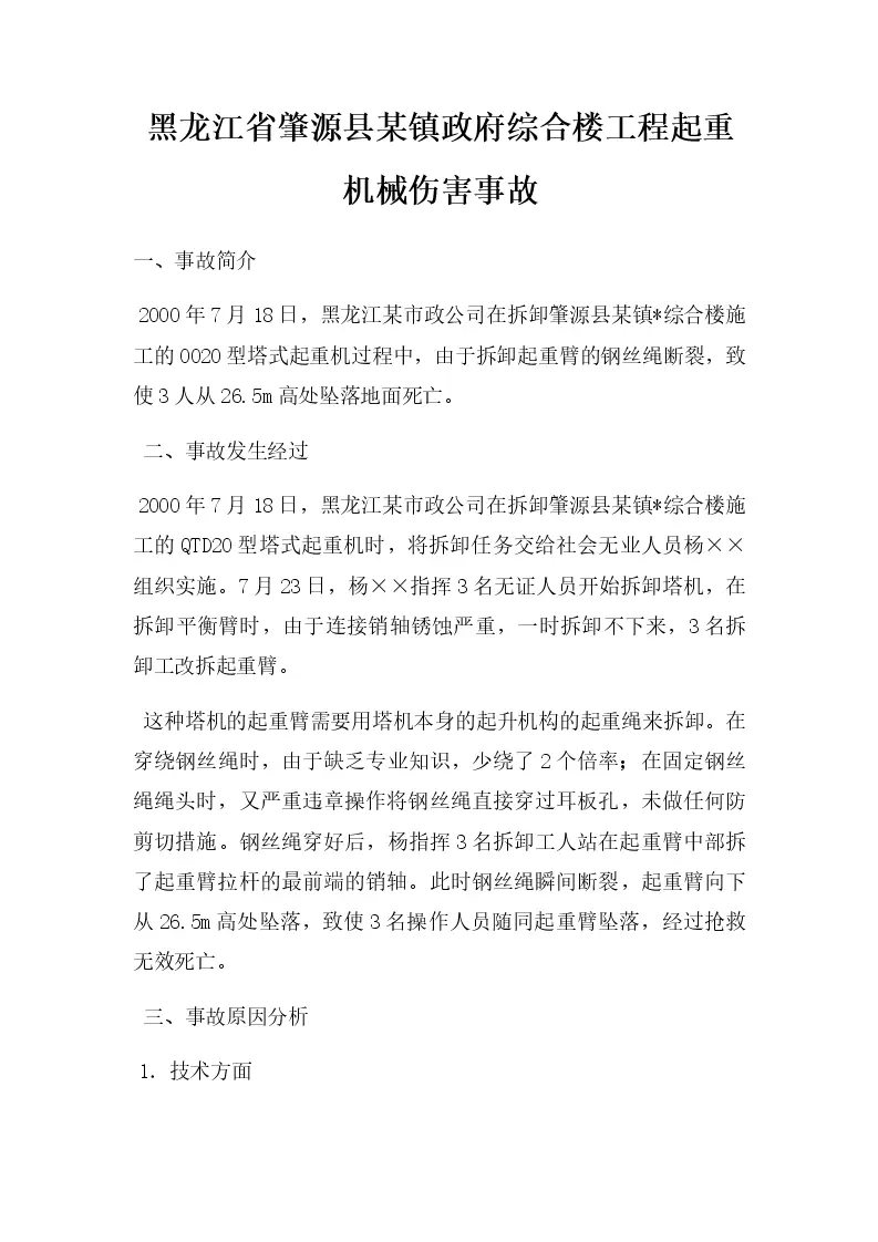 黑龙江省肇源县某镇政府综合楼工程起重机械伤害事故