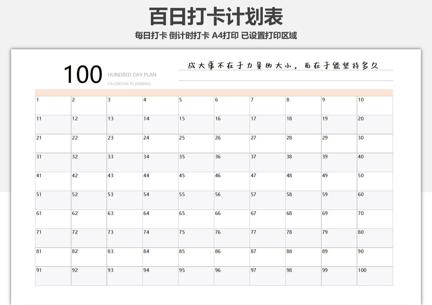百日打卡计划表