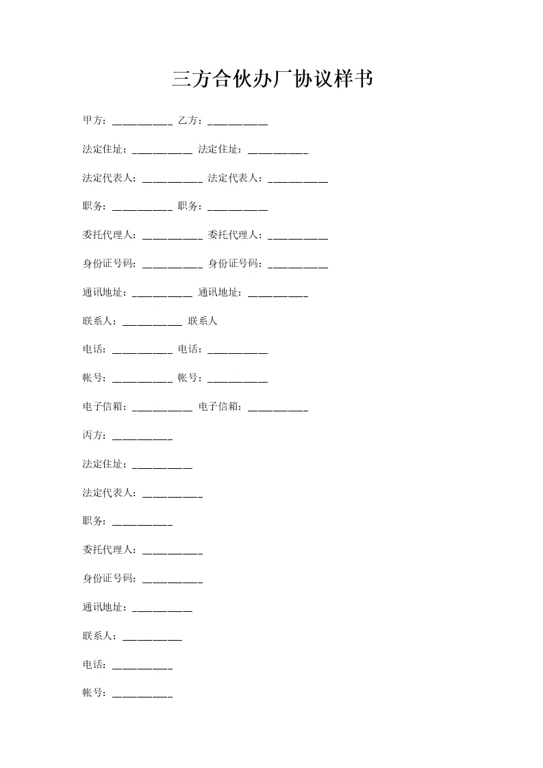 三方合伙办厂协议样书