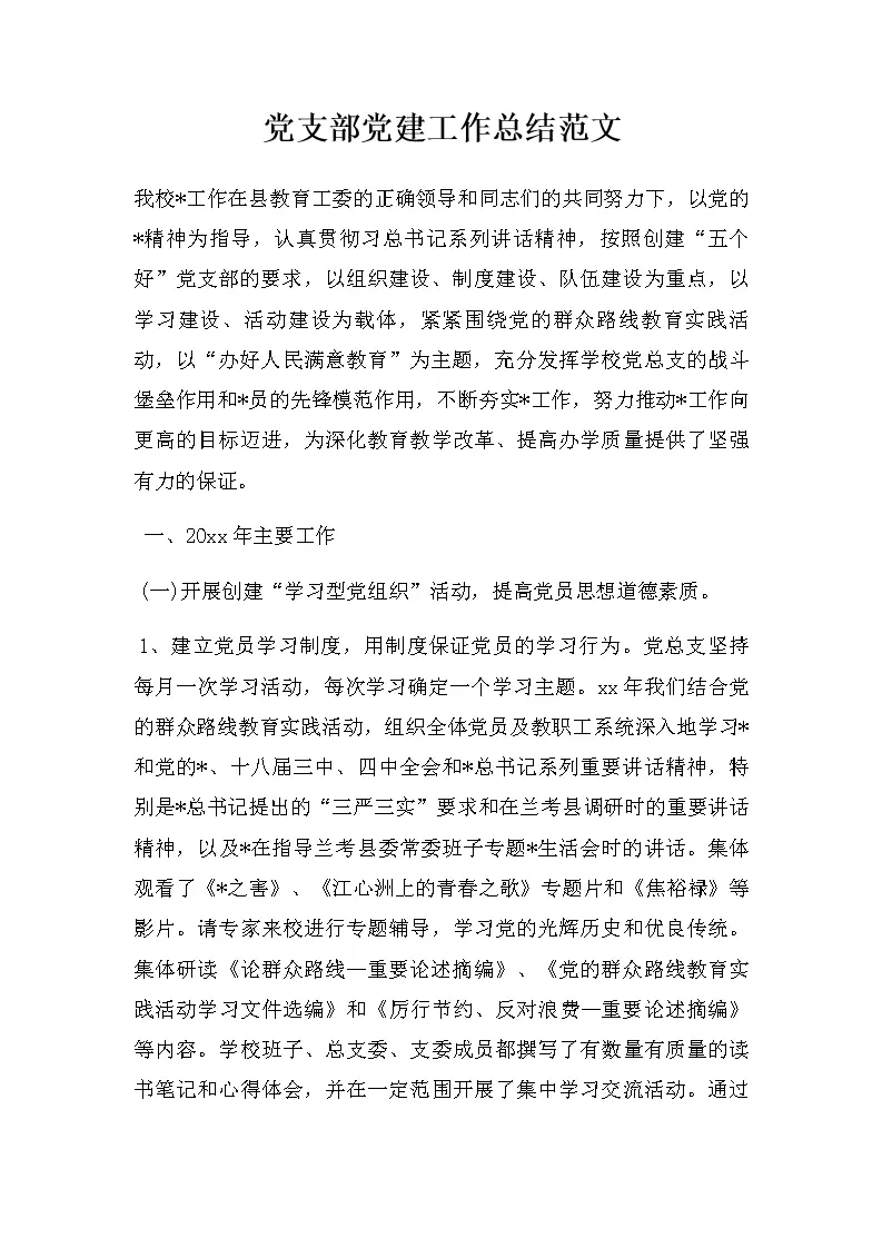 党支部党建工作总结范文(2)