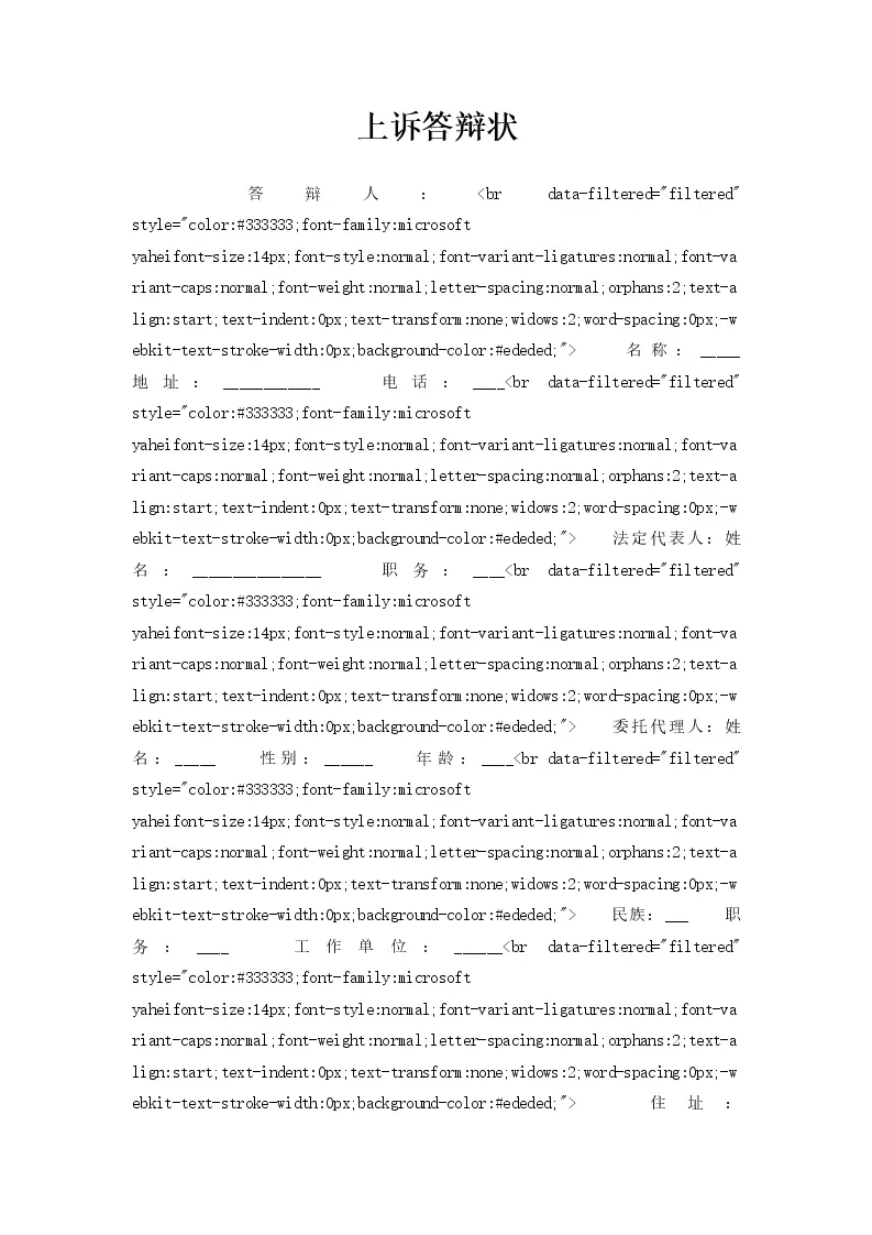 上诉答辩状