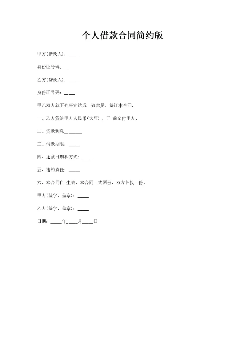 个人借款合同简约版