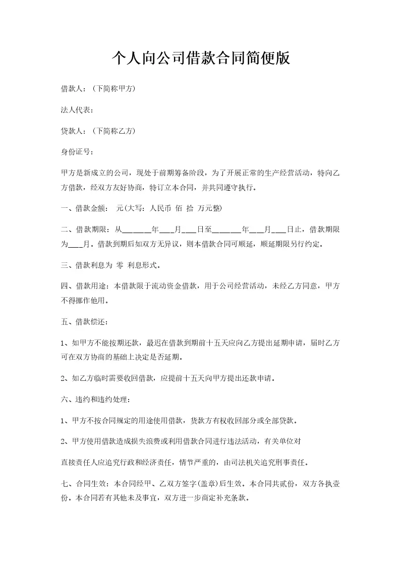 个人向公司借款合同简便版